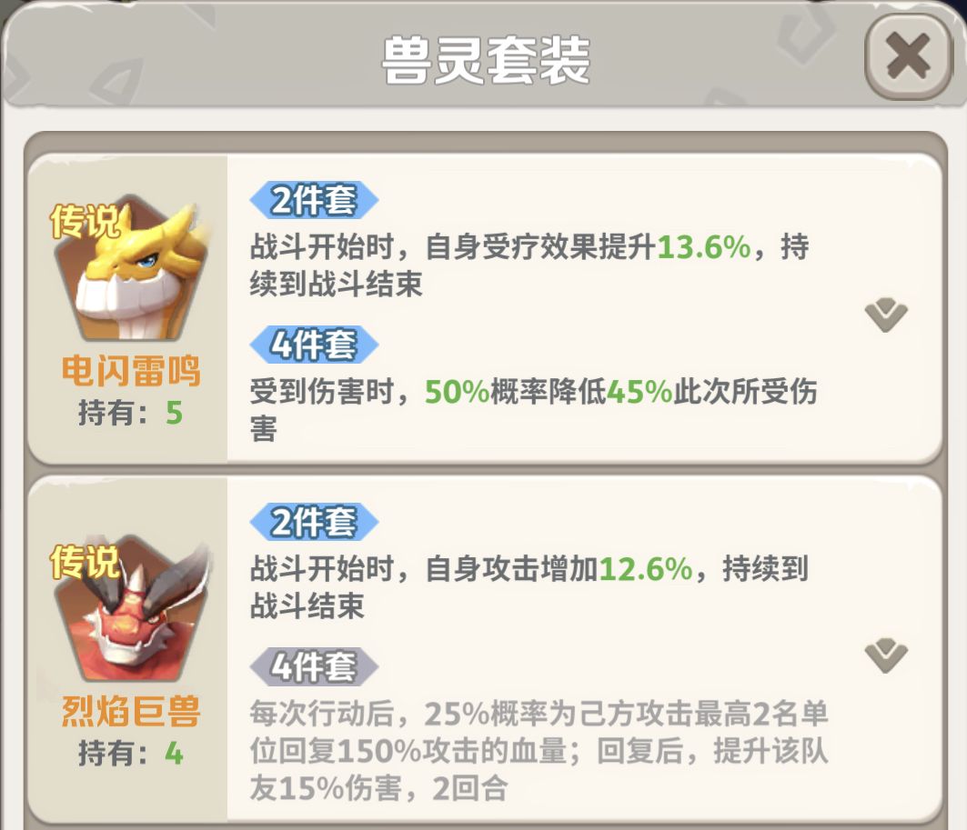 【兽灵】:电闪雷鸣4件+烈焰巨兽2件。