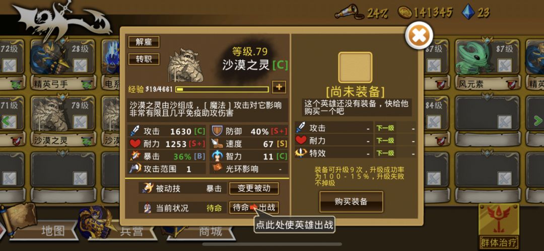 有的关卡留一个位置不要上阵,装备好金币买怪解雇一般不像前走除boss外小怪就两三轮就没了
