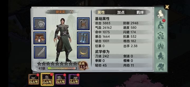 于是注册了账号,选择棍进入了游戏。一开始就是觉得好难刷啊,慢慢打吧。感觉很多地方都需要用到元宝,,而我玩游戏又很少充值的那种。看到攻略说微氪好玩点,我就买了一个6元礼包啥的,后面就没有买了。我发现每隔一分钟可以用紫钥匙开箱子,给不少元宝。一天可以开19次,算下来一天可以得到170元宝至少。再加上一些日常任务给的元宝。其实元宝节约着用还是可以慢慢玩的。不过红侠目前还没有招募到。见过两次在会客厅,一次是元宝不够,错过了,一次是感觉这个红侠不够强力忍住了没有招。目前还在期待出现强力红侠客。其实不急不躁的话慢慢玩,休闲还是不错,有锻造 ,农场 ,食物,酿酒,炼丹,送镖等。还是不错的,需要慢慢耍,节奏慢一点。目前42级,对游戏的了解还很低级,欢迎大家批评指正。