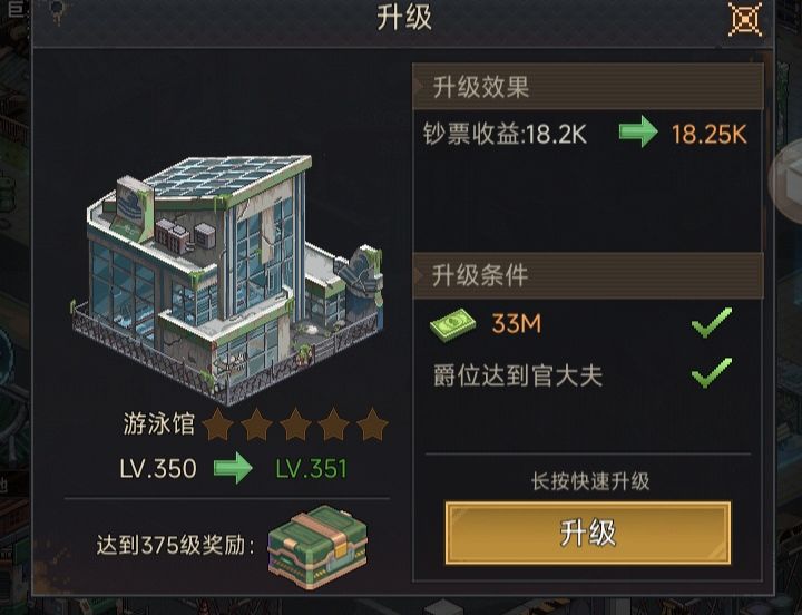 合理的利用25级一个建筑箱子,提高建筑等级和开出没有的建筑。