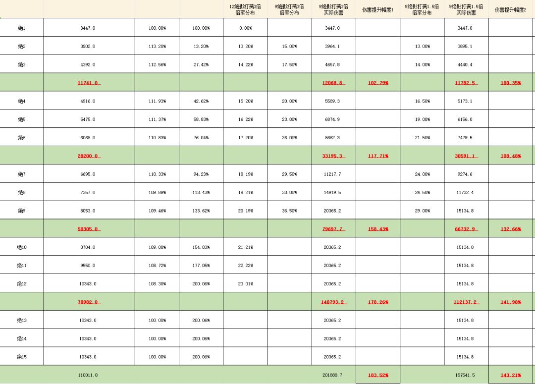 2.接回上面提到的【影之传承】被动技能,可否更改12绝影打满伤害,而是为9绝影打满被动伤害,后面10-15让玩家通过手部乘区来自行选择,让更多想通过操作打出更高伤害的玩家一些空间。毕竟9绝影可以在9-10秒左右打完,可是想打完12绝影并且绝影不进入cd状态,也需要12-13秒左右啊 。一套团本机制下来也就10秒输出时间。