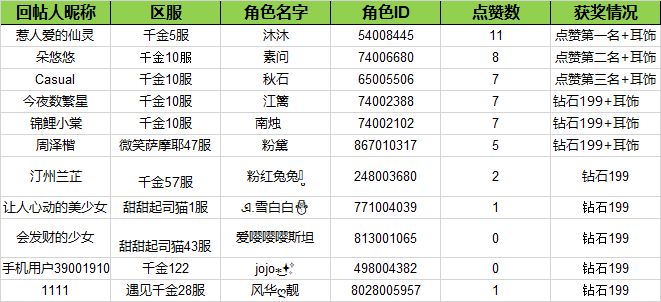4、中奖楼层:将采用随机数抽取中奖楼层;点赞最多奖励:当点赞玩家点赞数并列的时候,将以参与活动顺序决出先后名次;