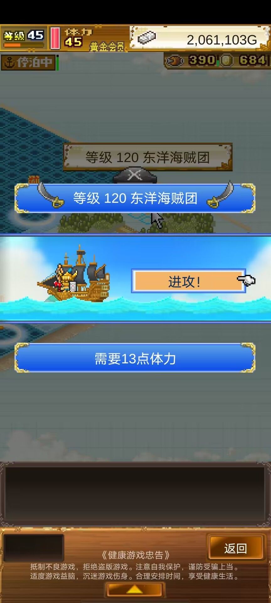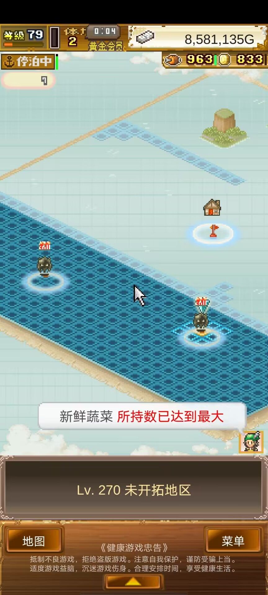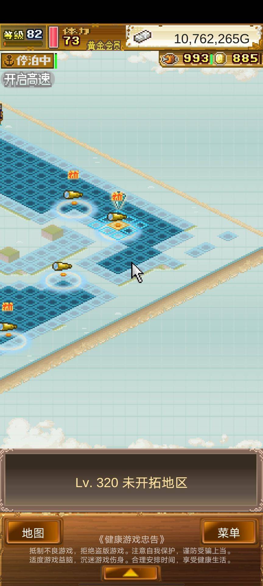 3、后面的6、7图需要77级才能制霸,前面的4图需要68和77级。这时候开始一边刷级和一边给M宠升级,周末的时候航海体力减半,可以嗑药把6图的海域解锁和打海贼船,节约更多体力(注意留下350海域先不解锁)。