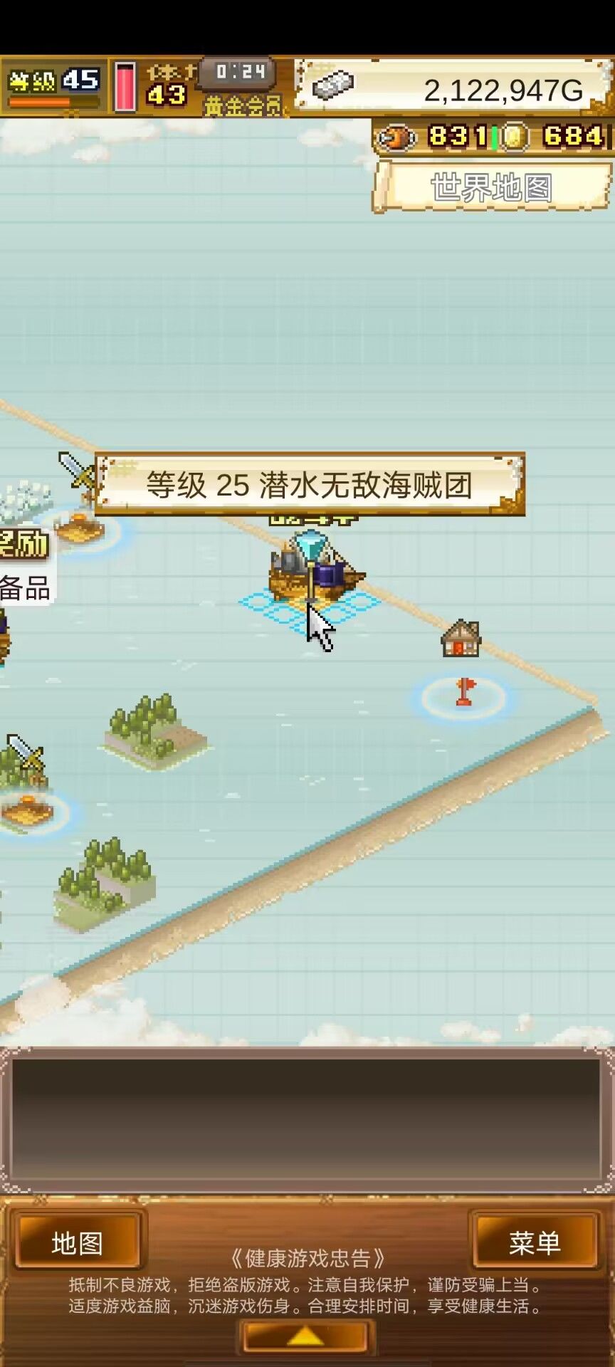 4图后面的要求等级比较高,就先不打了。前往5图,5图要求等级比较低,逐步制霸。同时5图148海域有一个大王,开局没选可以招过来