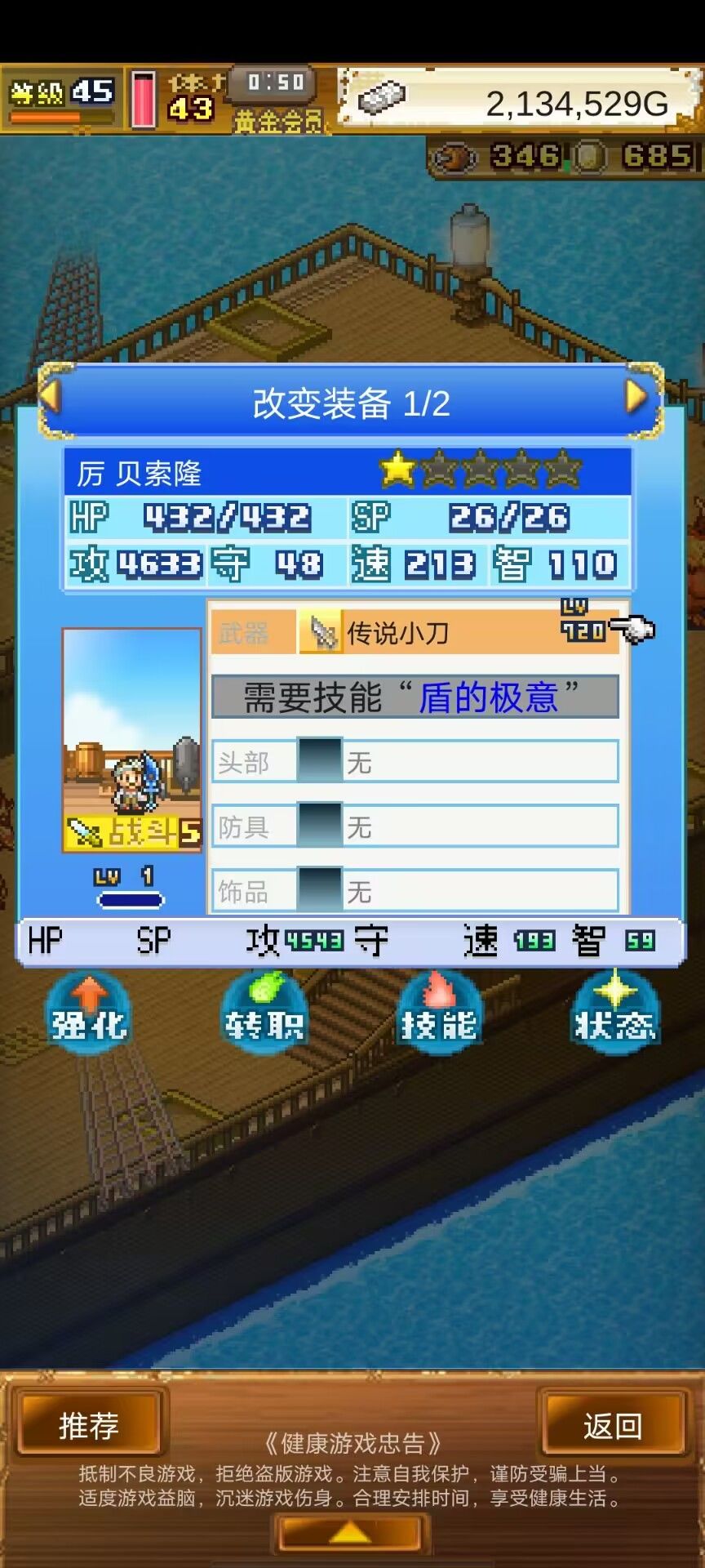 这次没关键点就不截图了,开局先招两个厨师,两厨师一键推荐装备,初始角色用知识书5精通后转魔法师精通后再转王国兵,一键推荐装备带上究极攻击1后开始推本。得到船以后,酒馆招满6个厨师(厨师只有一个1牌子的野生的,其他的都是10牌子以上的),跟着推图下去再招5个船夫,冒险家有1牌子的可以顺手招过来凑满下本-2的被动,没有不强求。水手可以多招点打打下手,所有工具人也一键装备把智力拉上来,工具人知识够了都先转成木工,因为木工可以带戒指,智力更高且岛内建筑可以省时间。推图记得先打第二个本,打完第二个本会解锁BOSS本,打完BOSS本解锁岛上建筑,再回头打第一个本。这样岛上建筑升级稍微快点
