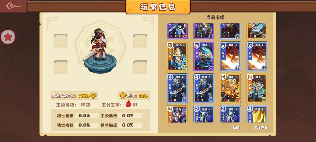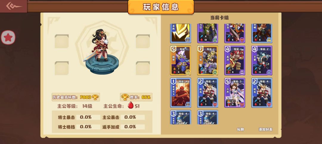 天梯多数对局为快攻,建议打后手,出牌以解场苟活为目的。即使费用转好了,可以出也尽量留手,提高解场血线。满手牌可以扔一张进行试探。喜欢进攻的玩家可以编入乐进、双杀之翼、蛮族战骑、机关凶狼等优质进攻单卡。一般解完对手第一波进攻以后就可以反攻,是否allin需要凭手牌自行判断。一般不建议防关羽,因为欧皇哪有那么多。。。![[表情_笑哭了]](https://img.tapimg.com/market/images/fe6f919040230da917dbf963c1cb67d4.png)