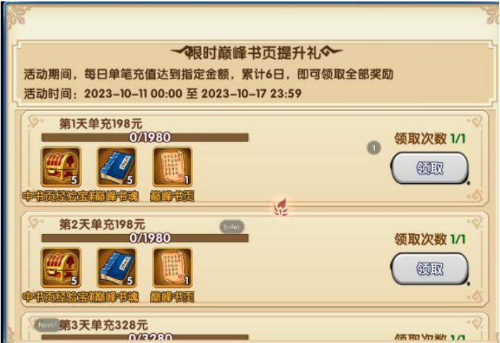 另外只有充钱活动-限时巅峰书页提升礼才能获得巅峰书页,如图所示: