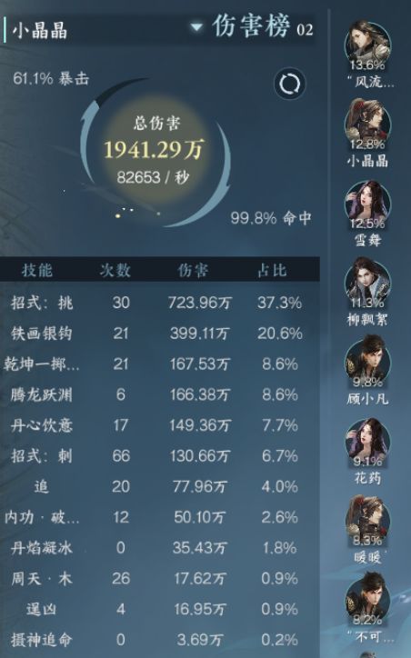 伤害打出来是最高的,至少我这个账号血河玩起来是最舒服的,带上群侠技能【兵锋现世】,在把伤害药吃上,随便上个10W不是问题!