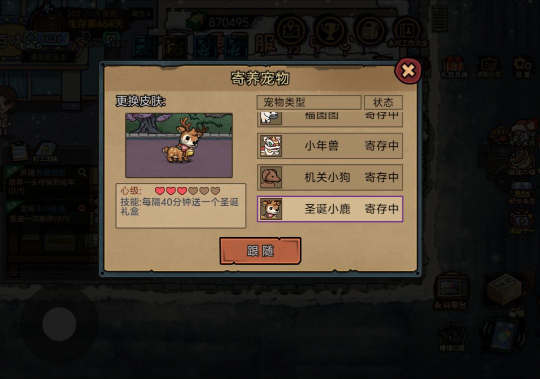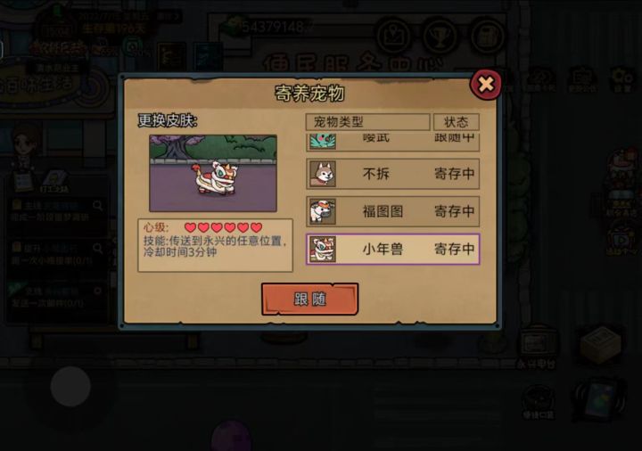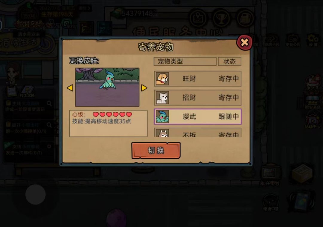 “便民中心”可以更换,升级宠物,当然前提是你有这个宠物!