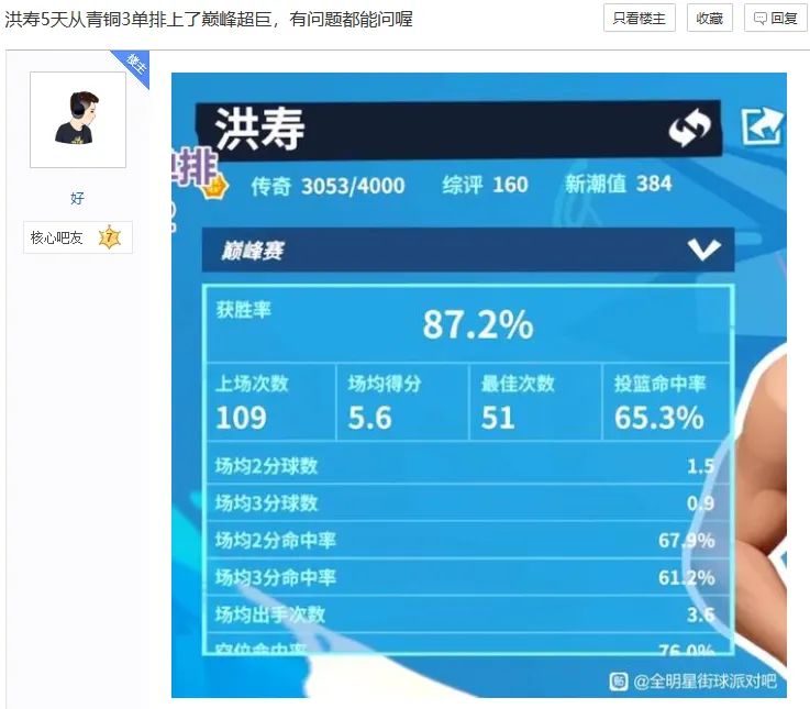 而凭借着一手出色的经验盯防以及传球的意识,好奇宝宝只用了五天时间,便使用洪寿从青铜三开始单排上巅峰超巨。