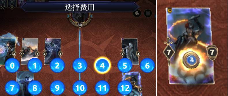 此卡选择的费用的结果以计数器的形式显示在生物上。此卡的召唤效果只是执行“选择一个费用”的行为,“无法打出卡牌”是在场的光环效果,离场则失去效果,此卡的机制类似于此前小型扩展的中立5费3/3“被遗忘的冠军”