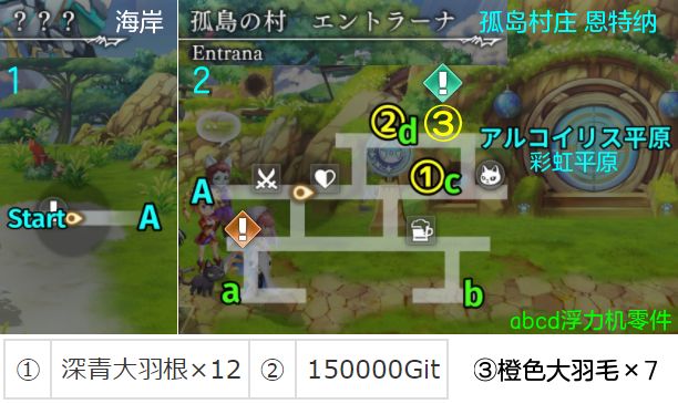 路线:和A处居民对话→不夜城右侧房间对话→皮诺比亚纳丘陵下方获得素材→不夜城右侧房间获得净水装置→回A处净水→拾取湖底怀表→还给A处居民,获得海猫族船的藏宝图(打捞地点:杰拉德冰原左下,可获得搭档装备逗海棒)