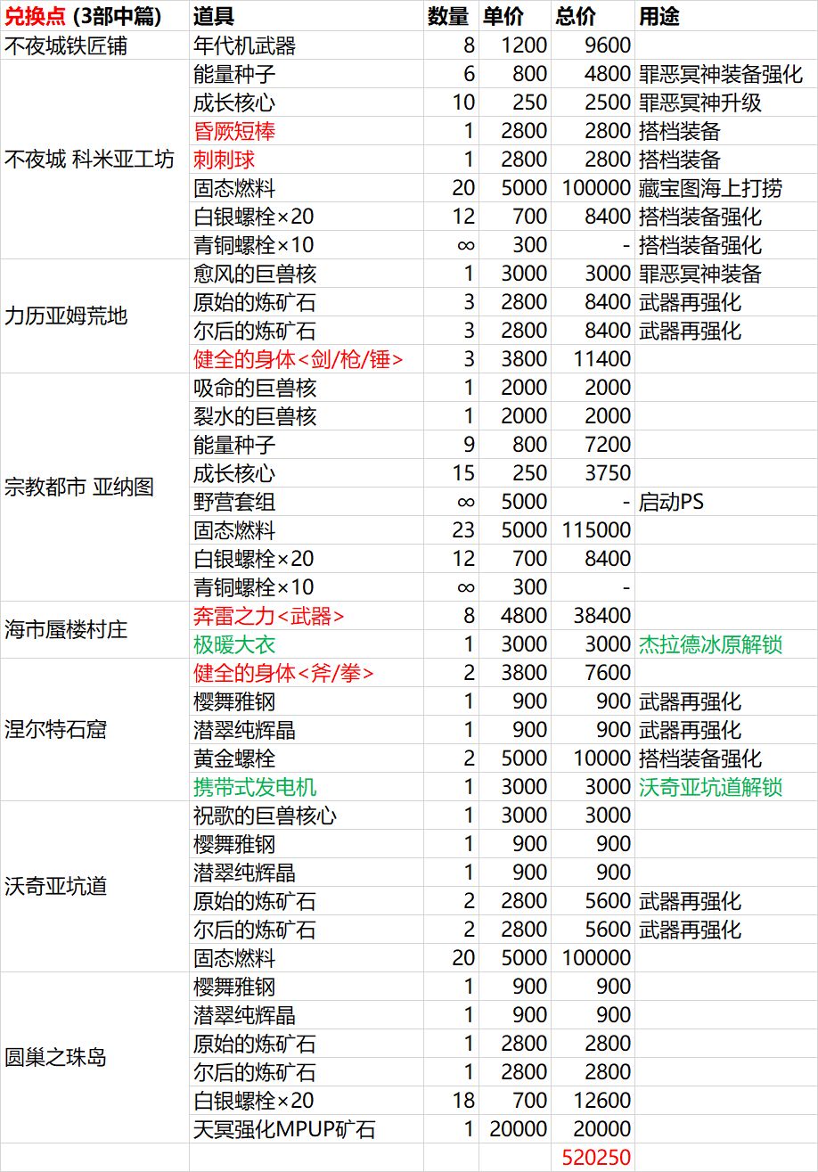 其他:①海市蜃楼村庄左上房间武器再强化(新增现代东方野图/古代八妖/西方外典武器) ②消失货物的藏宝图(打捞地点:沃奇亚坑道下方,每次打捞花费一个固态燃料,下同) ③武器再强化后可还原(v3.4新增)