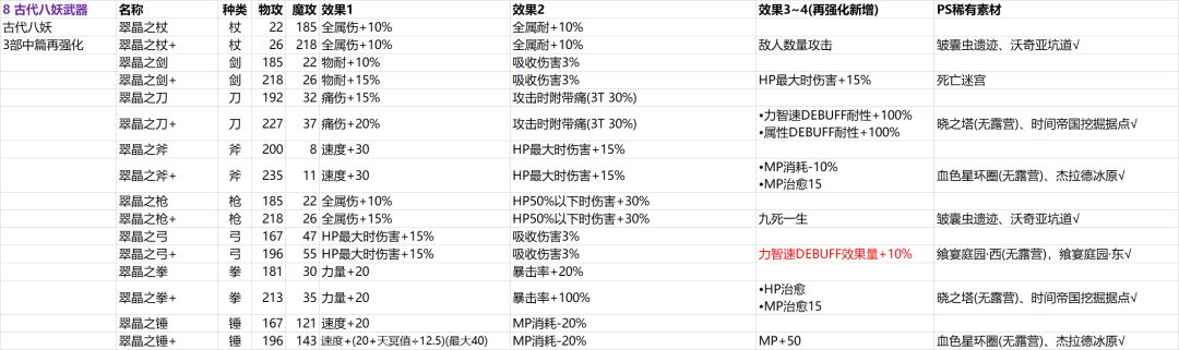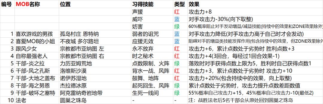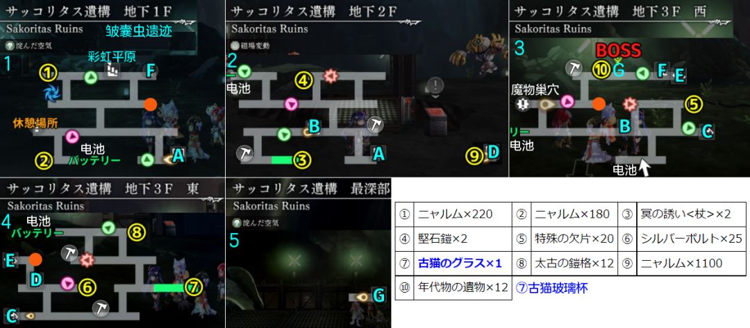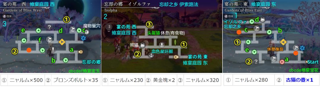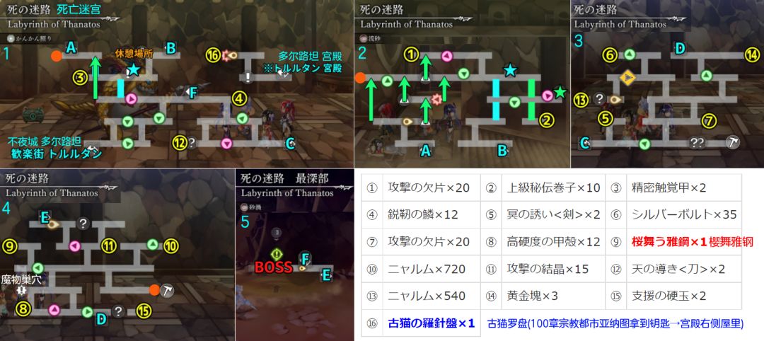 地图:seesaa wiki直接截图处理,顺序横向,下同。弱耐可能不准。