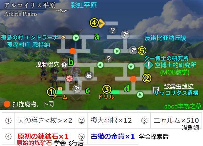 ③魔物巢穴:连点即可挂机,用于百讨,获取喵鲁姆。调整好位置可以让敌方不发现自己就进入战斗,缩短时间。