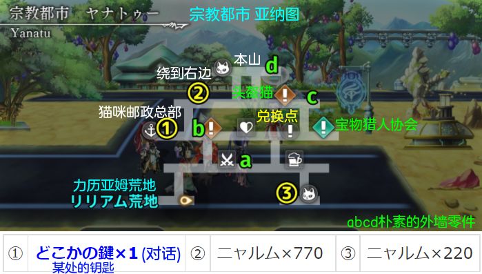 宝箱:③找4只头盔猫(宗教都市、忘却之乡、海市蜃楼之村、涅尔特石窟)