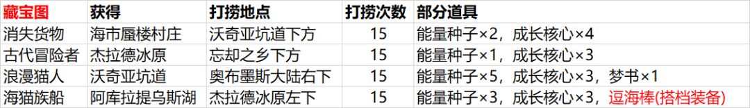 其他:①2图兑换点 ②浪漫猫人的藏宝图(打捞地点:奥布墨斯大陆右下)