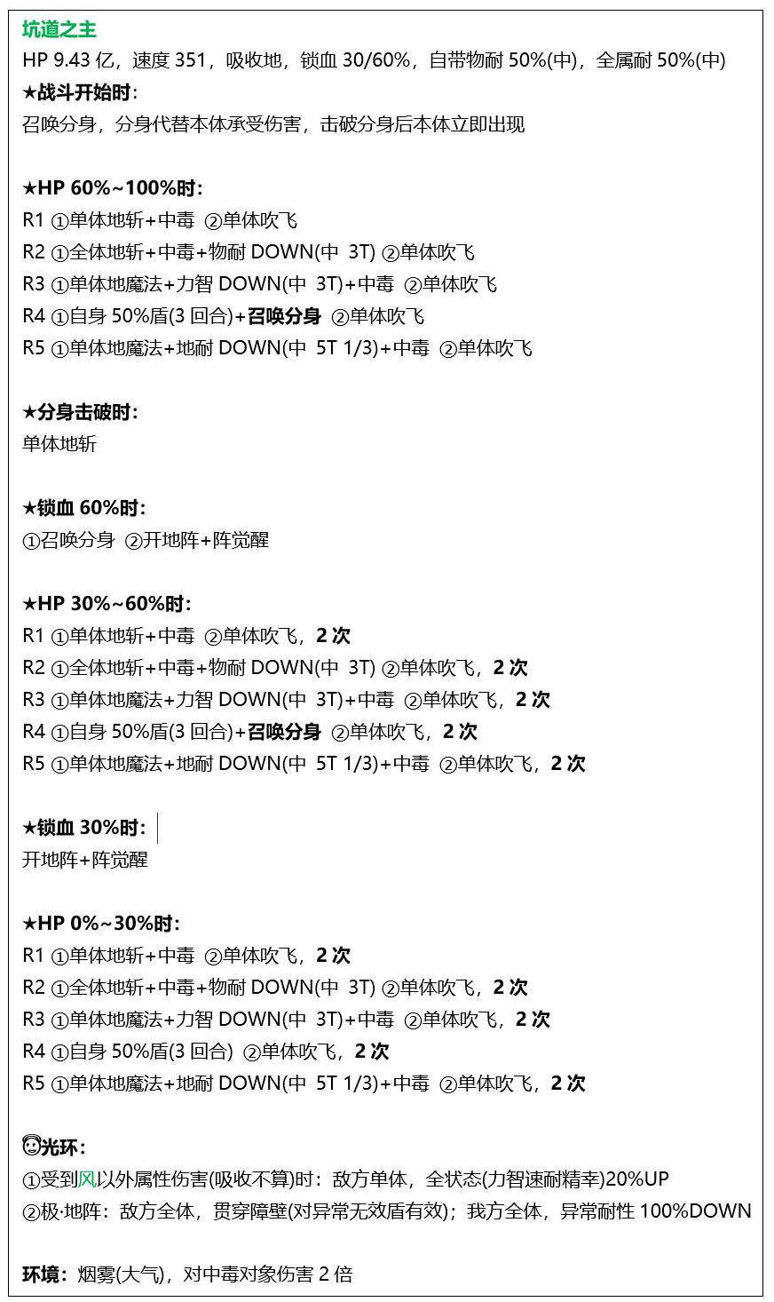 我的队伍:很简单,后排角色没用到。特点是有分身,可看作HP护盾,打完分身会继续打本体,即①打分身1+本体到60%,召唤分身 ②打分身+本体到30%,不召唤分身 ③打本体到0%