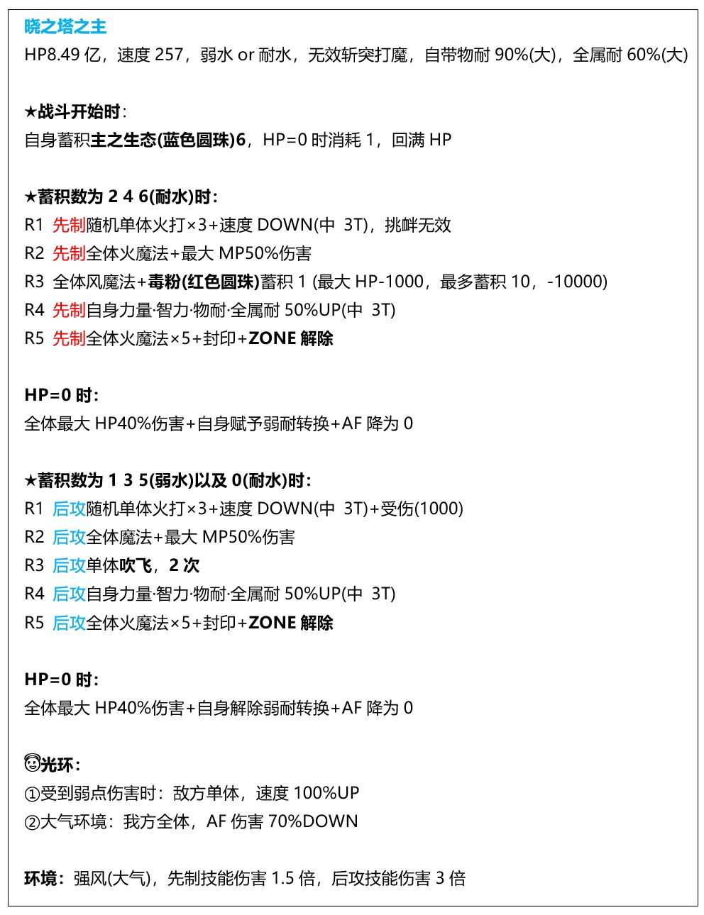 路线:宗教都市 亚纳图→VS巨剑象剑刺神象(巨大兽,锁血45%?,弱魔 耐斩)→🌎晓之塔 图里亚尔瓦→VS帝国特殊部队(锁血25/50%,耐突打风阴)→宗教都市 亚纳图→101章END