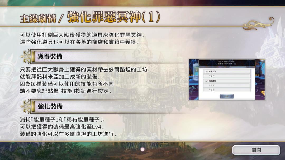 路线:不夜城→皮诺比亚纳丘陵→不夜城→🌎死亡迷宫→VS巨潜兽迷宫恐虾(巨大兽)→VS巨枪人锐鳞巨兵(巨大兽)→VS BOSS岩浆巨兽(巨大兽,锁血30%,弱风 耐地,打不过先强化罪恶冥神)→不夜城→罪恶冥神学会飞行(悬浮)→99章END