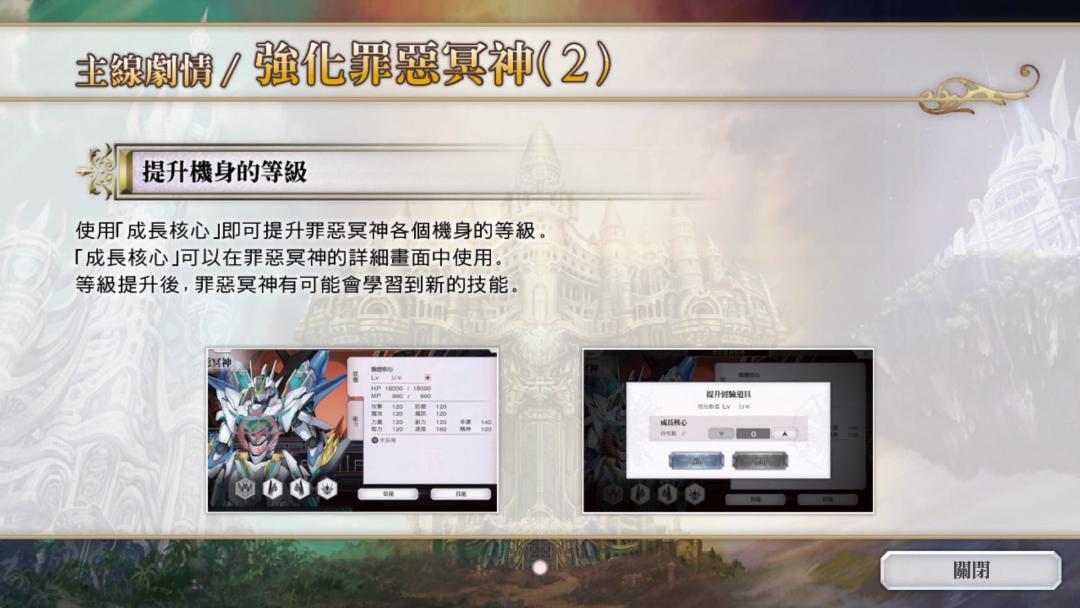 大地冥神II(巨大兽):如果各章道中巨大兽都有打,兑换点换完所有成长核心,则机体4个部位都能升到Lv56,注意降力智,很简单。