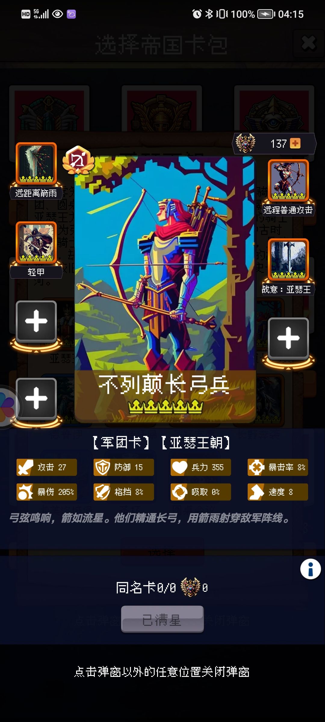 不列颠长弓兵:弓兵 远程伤害。触发30—55% ,每个敌方回合开始时 对敌方全体造成150—213%远程伤害。