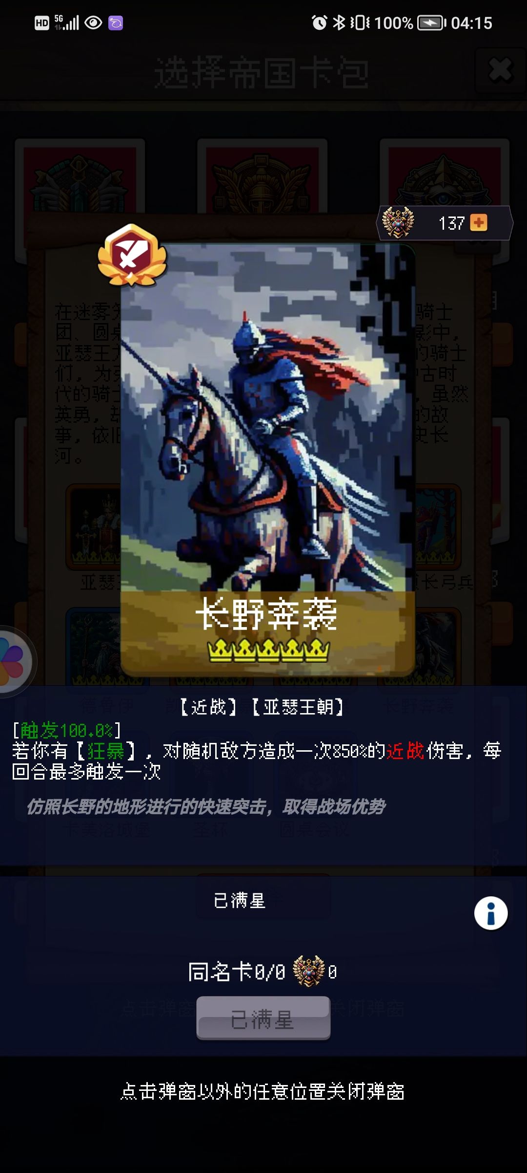 圆桌骑士:骑兵 近战伤害。触发50—100% ,近伤、远伤+3%,无限叠加。