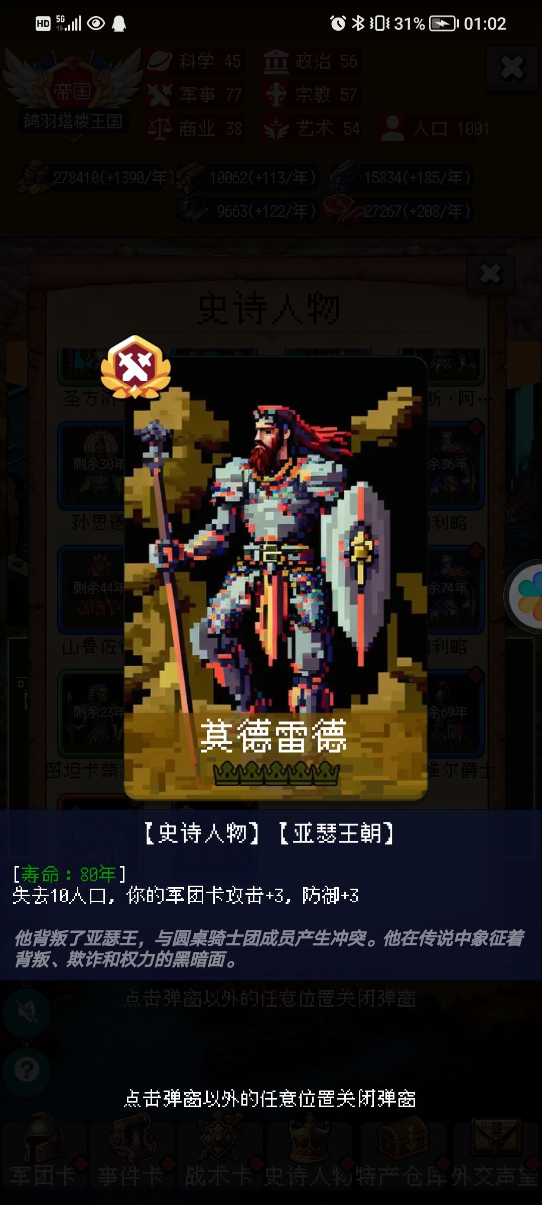 莫德雷德:—10人口,+3攻3防。