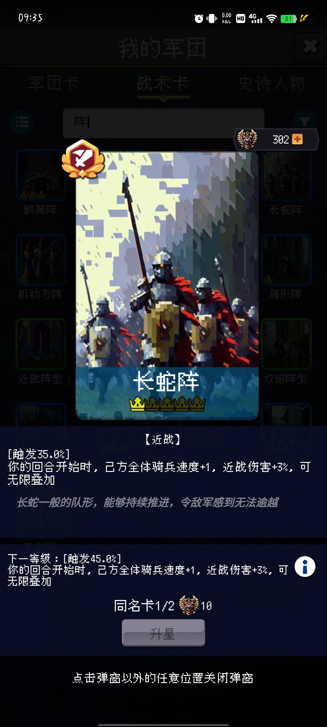 7、鱼鳞阵:如果是玩重骑,一定要带,不仅加暴击还加吸取,非常好用的一张卡,还补助了骑士的补充短板,但是有别的好卡就当我没说,步兵也可以带,挺好用。