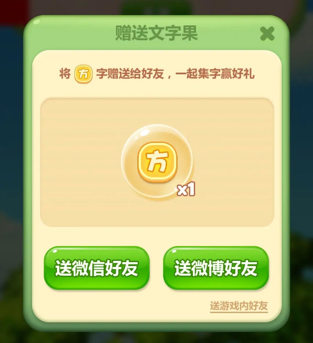 小村民可选择耐心等待果实成熟,也可选择邀请好友助力为其加速,成功获得好友助力的果实将必定开出果树文字,助力更快集齐全部文字获取奖励。