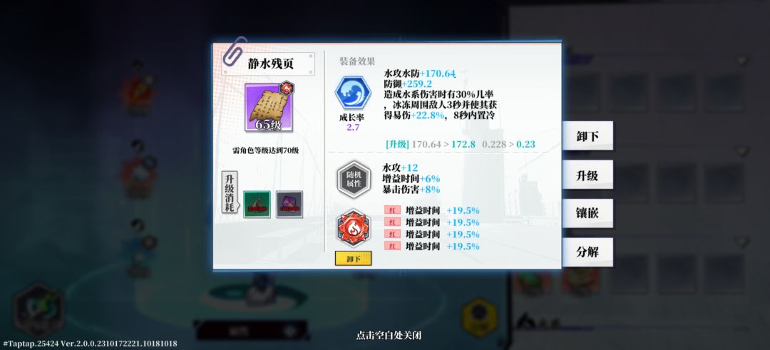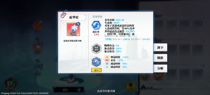 剩下的就是装备选择了主要就加水攻,加冰冻,加减益时间,减益时间就是可以冻怪的时间更久的,加爆伤,加伤害,当然根据自己情况,也可以做一到两件防御装备过渡一下,需要大家自己摸索啦