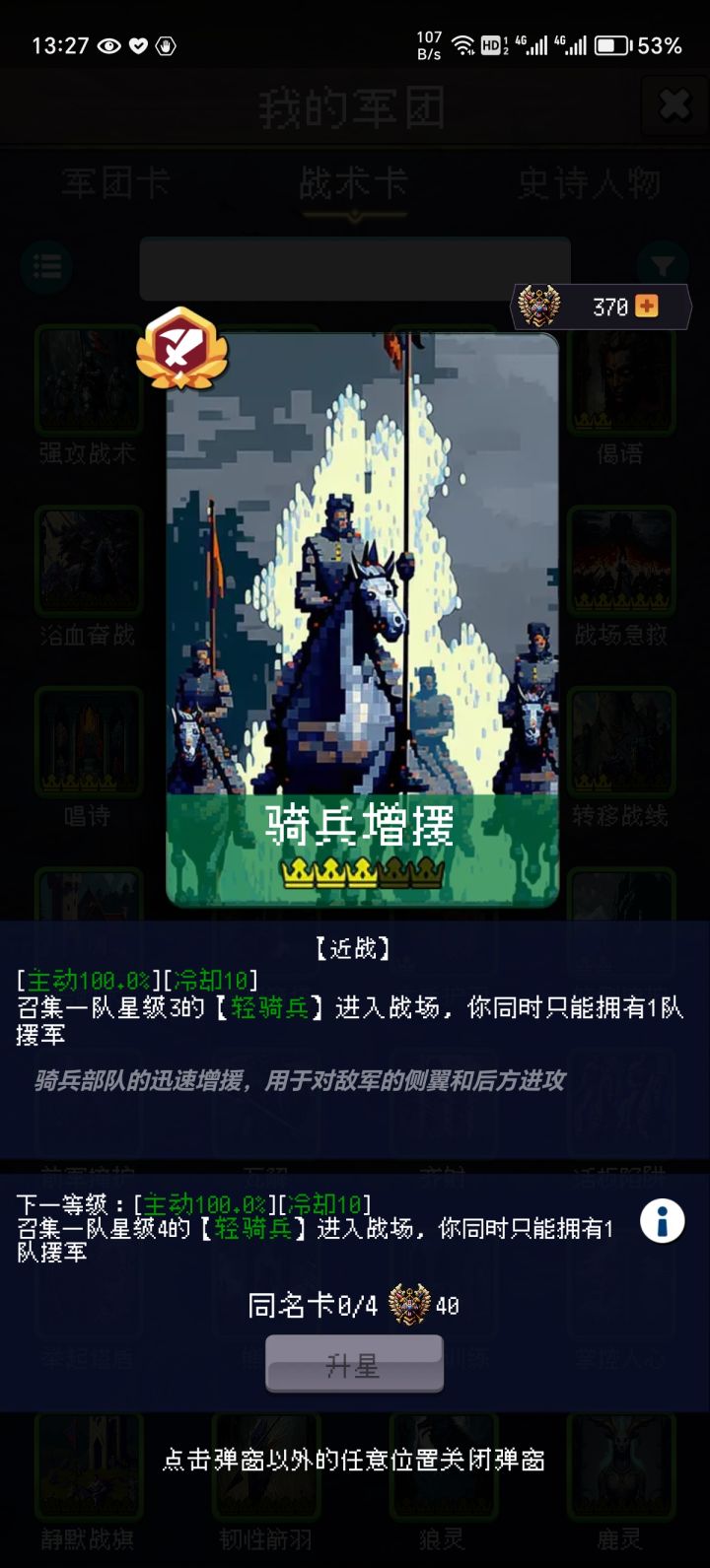 五大增援卡之第三,抗伤输出语步兵增援相差不了多少,满星可用于打指定兵种战役