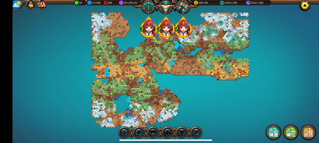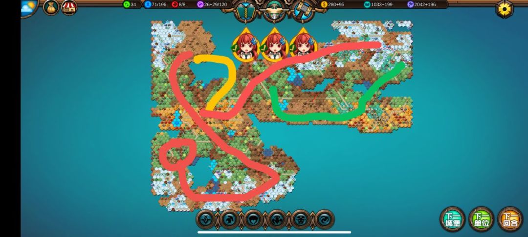 前面锤子变知识能提前一回合(9回合)点英雄1,尽可能在9回合能存够200,和另一块地(2座城出王子+大牧)
