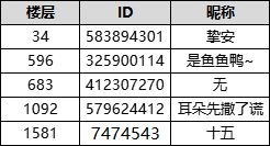 特别说明:595楼玩家因不符合要求顺延至下一楼,但与595楼为同一用户。