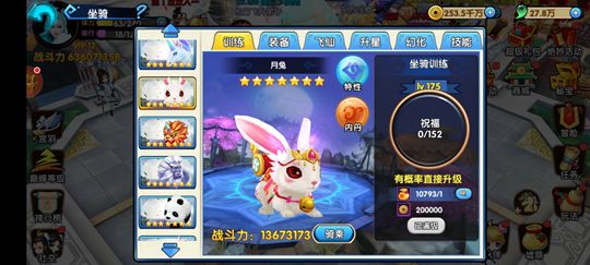 1:有除了双人坐骑以前的各种坐骑碎片比如凤凰,独角兽,哼唧兽,熊猫,白狐,囚牛等坐骑,通过蛮荒证道通关的到大量的碎片对坐骑进行升级和幻化。