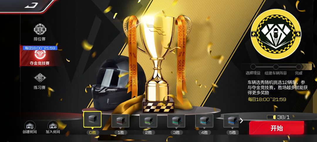 夺金竞技赛是全新的独立玩法,在这里所有玩家都将会使用游戏提供的车辆进行比赛,通过自身实力夺得12胜大奖!