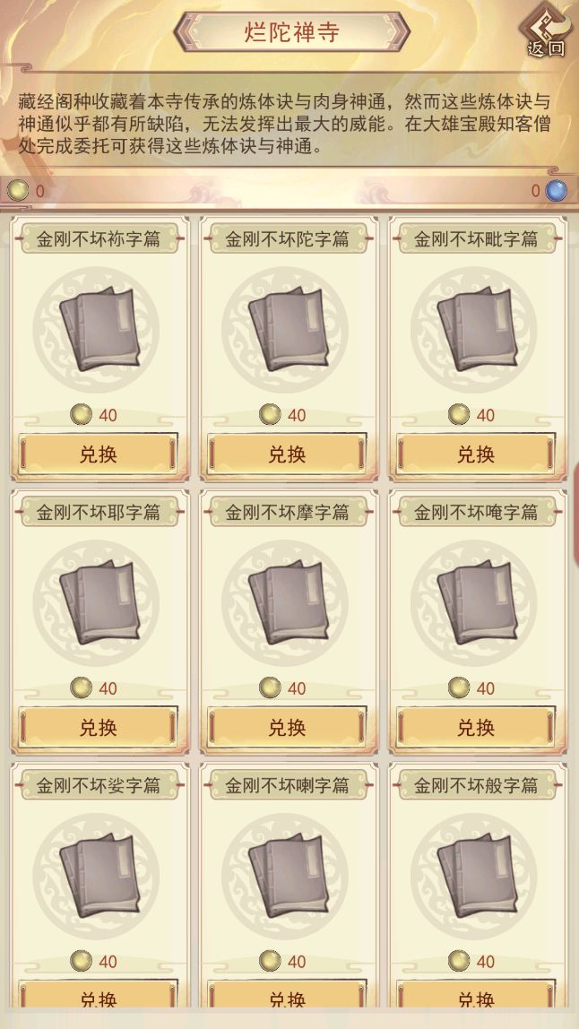 1.声望可以在禅寺的大雄宝殿获得,金珠可以兑换肉身神通,银珠兑换炼体诀。详见图五