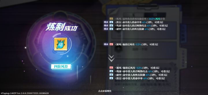 受到刀子攻击的目标会获得一层(小于5秒)的印记(即使被闪避也可以添加印记),当单位身上的印记超过3层时,每秒受到20%±15%的风攻伤害,持续5秒