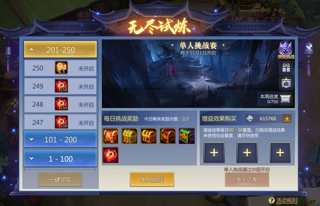 通关奖励︰无尽挑战可通关层数最高为250层,每通关一层都可以领取一份层数奖励