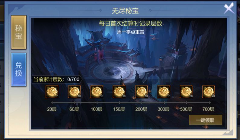 在下个版本无尽试炼还将新增无尽秘宝,每周累计挑战层数,可得试炼积分,兑换好礼!