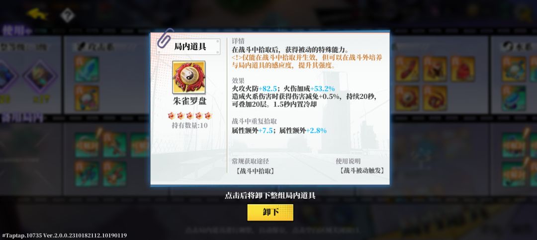 玉我带的是两冷却两增益两火攻,至于不要爆伤玉的原因,一是因为不带神威使得爆伤基础面板的收益减小,二是即便我局外面板爆伤只有227,局内也达到了537的倍率,再加上羲和盘和翰音琴可以使boss额外受到250%左右的爆伤,局内爆伤差不多够用。当然想把一个冷却玉换成爆伤玉也可以,输出会更高一点。