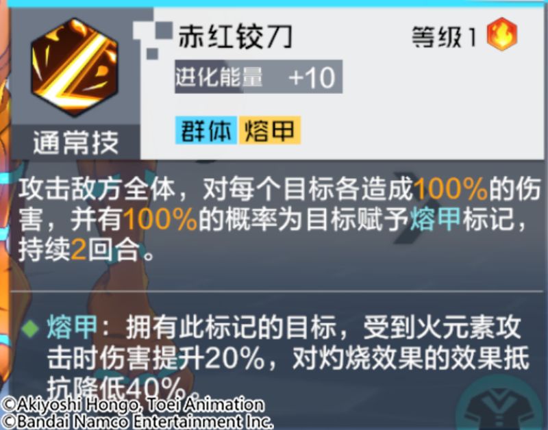 技能解析:伤害可观的群体攻击,攻击后将以100%概率为目标赋予熔甲标记。