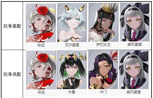 抗争阵营【红蓝】:命运+瓦尔基里(平替木星)+萨巴(平替卡门)+威风堂堂