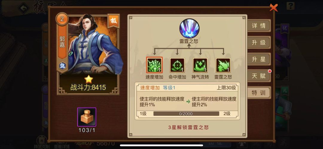 援军培养初期不论是出战表现还是特训内容的增益,作用都不大,目前阶段玩家想得更多的是怎么尽快拿到三大阵营代表性的三个橙色援军,其它武将可以慢慢花时间丰富起来。初期也希望攻城越打越简单,克制阵营的武将够多,接下来才是缓慢去提升克制伤害加成,当我们各种伤害增长到位了,就可能更为轻松的打到第16关了,每天的扫荡会有更多资源,再反哺援军养成。而不是专找带攻击的援军去培养,建议三个阵营均衡发展。可能到后期资源特别多时,我们能获取更多的橙色宝箱和养成材料,援军升星也变得相对简单,目前阶段还是奉劝大家别把焦点都放在援军特训上,而是扎根攻城略地,结合神秘商店和活动购买,广积粮缓称王。