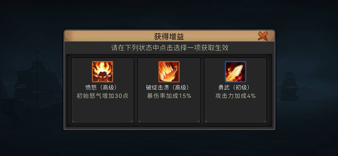 增益建议首选高等级橙色加成,以此类推,有高等级选高等级,有中等级选中等级。但推荐首选攻击加成(1234技能伤害提升),次选暴击、暴伤率,第三才到防御类、增加蓝量怒气或其它增幅,最后才是选择移动速度类增益。不过也可以酌情根据随机到的增益内容,看等级看品质来灵活变通,也要考虑它是高等级、还是中低等级,如果说高等级的增益实用性不大,那还不如选一个中等级效果好的增益内容,至于具体怎么选,还得大家根据实际需要综合考虑。