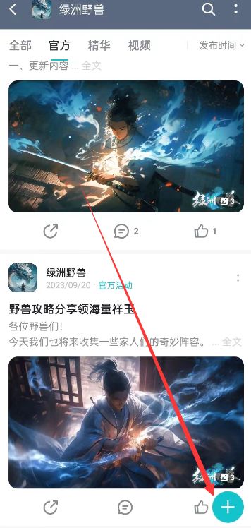 第二步:在论坛的主页面,点击右下角+号发送论坛帖子