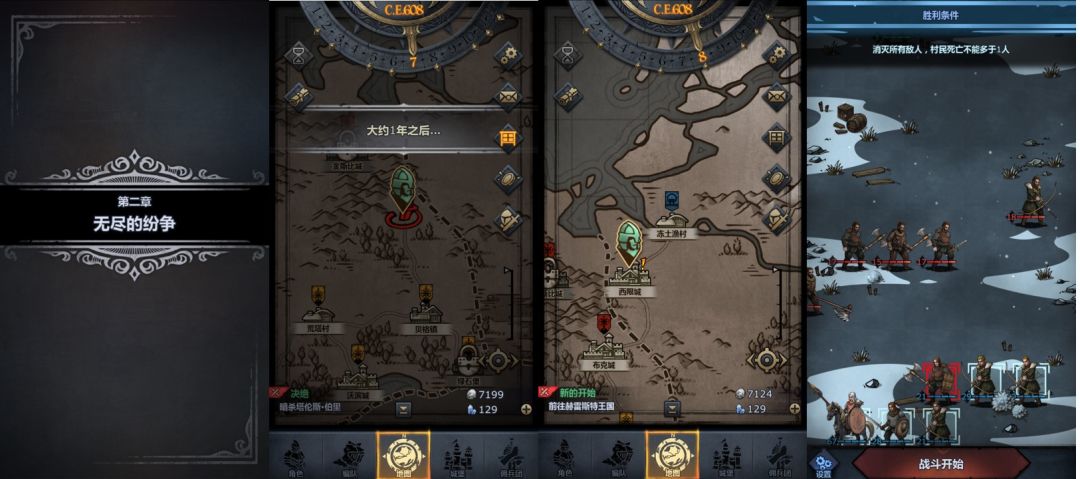 在完成暗杀塔伦斯伯爵后,我们正式开启第二章,期间会跳一年时间,一年过后我们会自动前往赫雷斯特王国,并进入第二章第一关。本关很简单,直接按上图所示布置阵容,而后老骑士主要输出即可,注意尽可能先清掉左边敌人,从而减少平民伤亡。