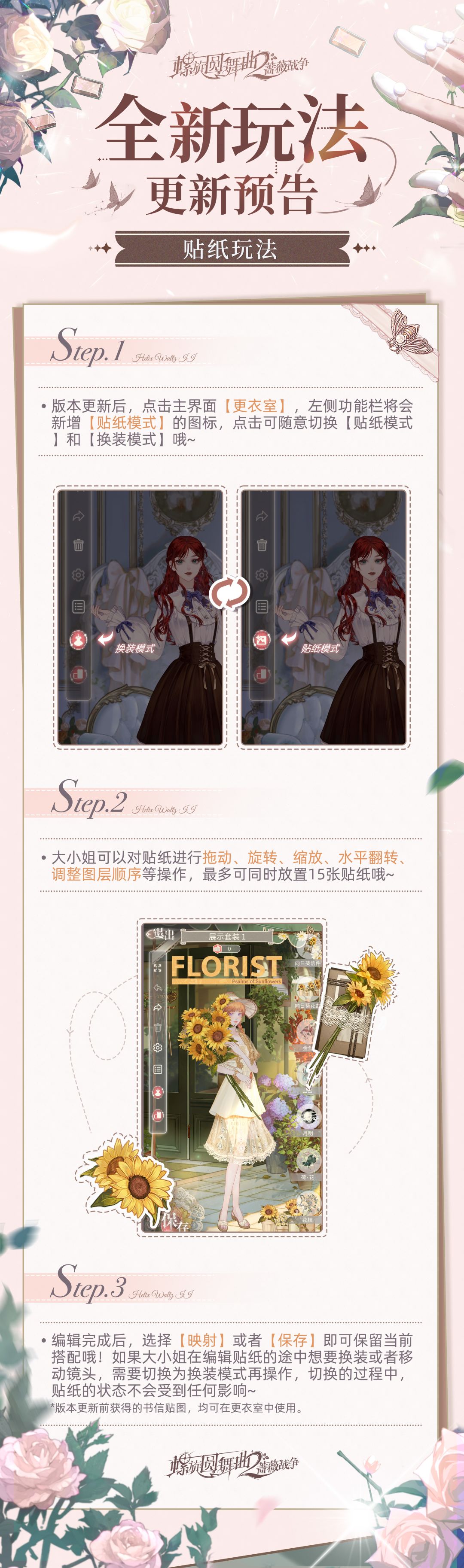 👗更衣室全新升级,新增【贴纸模式】按钮,大小姐们可以自由布置贴纸、更换背景,随心装饰你的穿搭!