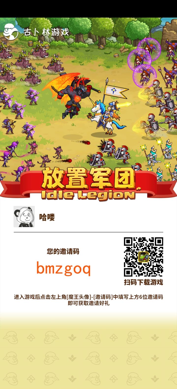 邀请码: bmzgoq 你领取1000氪晶,我能领到一个工人,后期还能来我这卖高价特产,大家互惠互利。如果有新玩家看到的话,可以在建号的24小时内填写一下我的邀请码(但是不要先填,最好刷到一个好开局,决定要长期玩这个号的时候再填),超过24小时就无法再填邀请码了。(点左上角头像,输入邀请码)