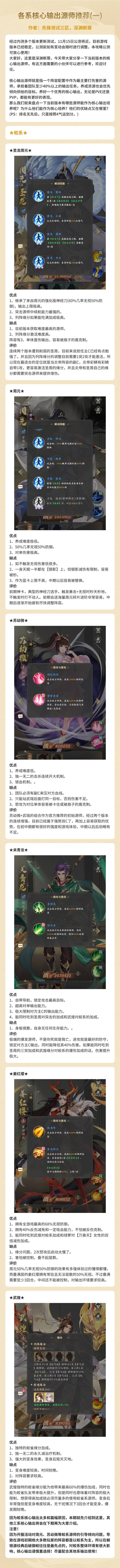 《攻略》各系核心输出源师推荐(一)